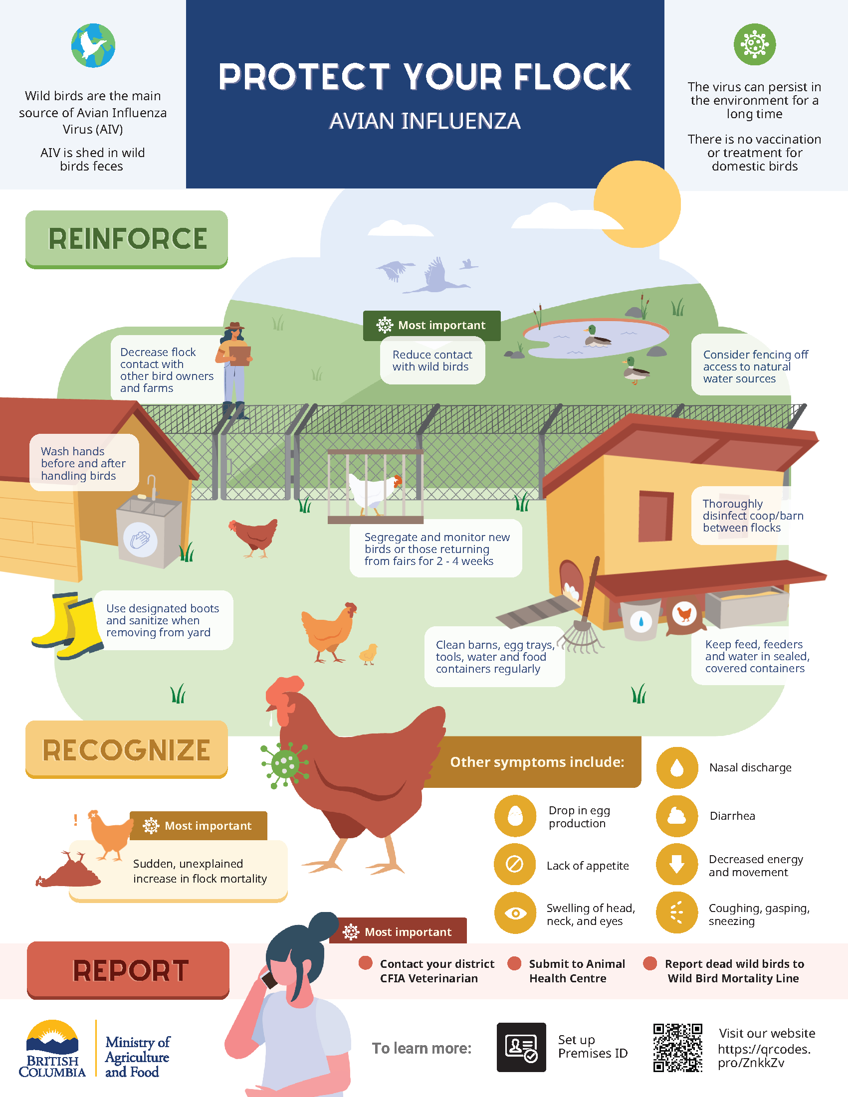 Small flock owners can call the Ministry of Agriculture and Food’s hotline at 1-888-221-7141, 8:30am – 4:30pm PT (Mon–Fri, excluding stat holidays).