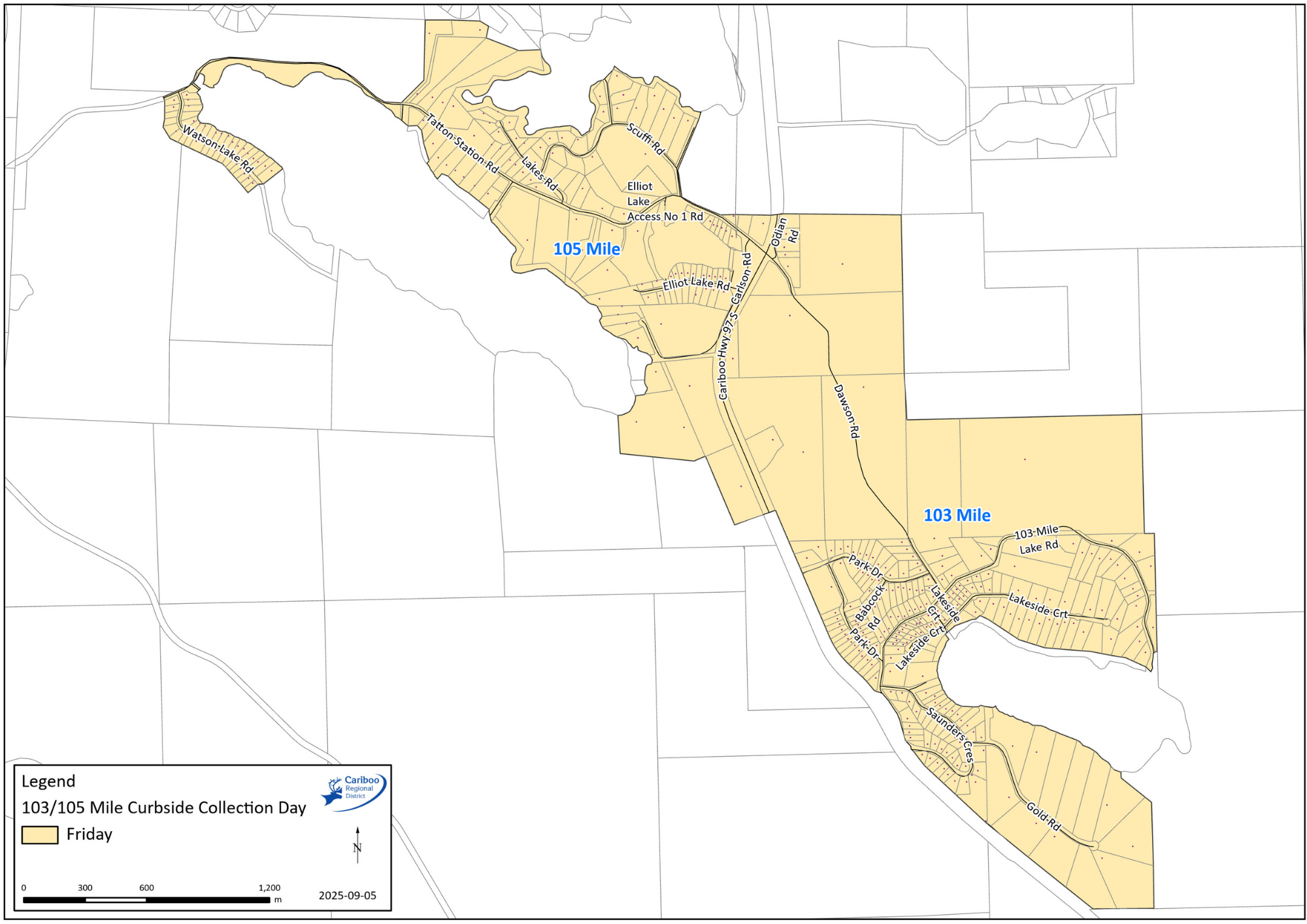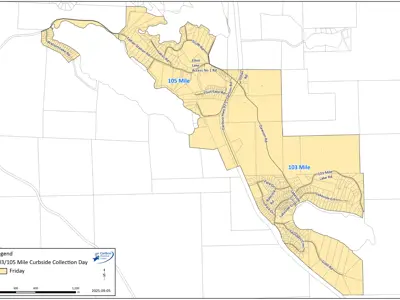 The CRD's SWMP was approved by the CRD Board in December of 2023 and approved by the Ministry of Environment and Parks in March of 2025. Implementation of the SWMP is underway and roll out of the curbside services for 103 Mile and 105 Mile is scheduled for late September 2025. Residents can expect to receive their curbside totes after September 16th and if all goes according to the schedule, the first collection day will be Friday, October 10, 2025.