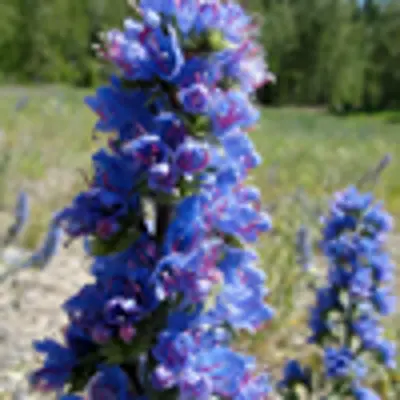 Blueweed was introduced into North America from Africa as an ornamental plant and is now found across Canada and the United States. It has a large taproot and multiple lateral roots with a large flower spike that may reach up to 80 cm in height.