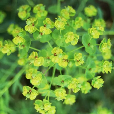 Leafy spurge has an extensive lateral root system and clusters of small yellowish-green flowers growing to 80 cm tall. Leafy spurge has shown to be extremely invasive in many habitats with infestations becoming very dense. The milky latex is toxic to some livestock and this species generally increases on heavily grazed lands.