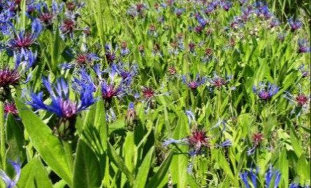 Mountain Bluet is native to Europe and was brought to North America as an ornamental. It has blue lace-cap flowers with rose anthers at the ends of the stems and grayish-green wooly foliage. Also known as Perennial Coneflower and Bachelor's Button. Adaptable to both dry or moist soils, it is considered to be drought tolerant. Grows at a fast rate and a single plant can live for up to 15 years.