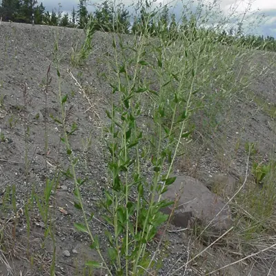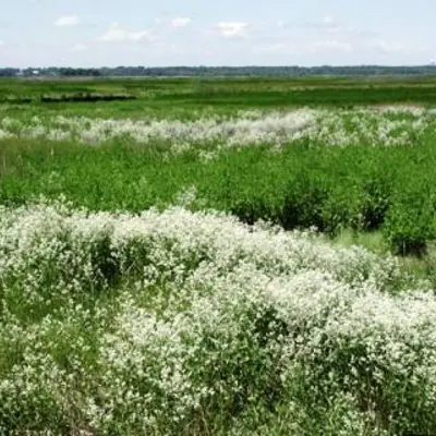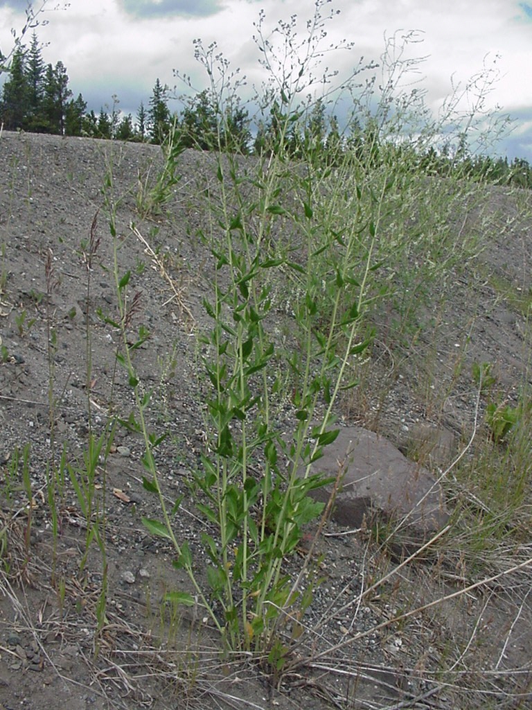 Perennial pepperweed was introduced to North America from Eurasia and is a deeply rooted perennial forb with waxy coated leaves and stems. This member of the Mustard family can grow up to two metres tall.