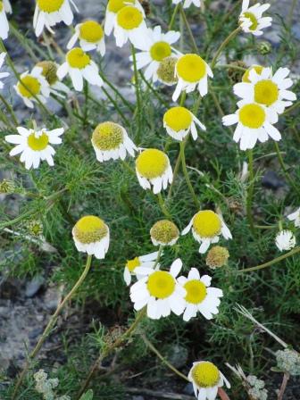Scentless chamomile was introduced to North America from Europe and is now found in all Canadian provinces. The large white flowers are similar to oxeye daisy, but the finely divided, scentless leaves help identify this species. Scentless chamomile is an annual to weak perennial forb with an extensive fibrous root system.