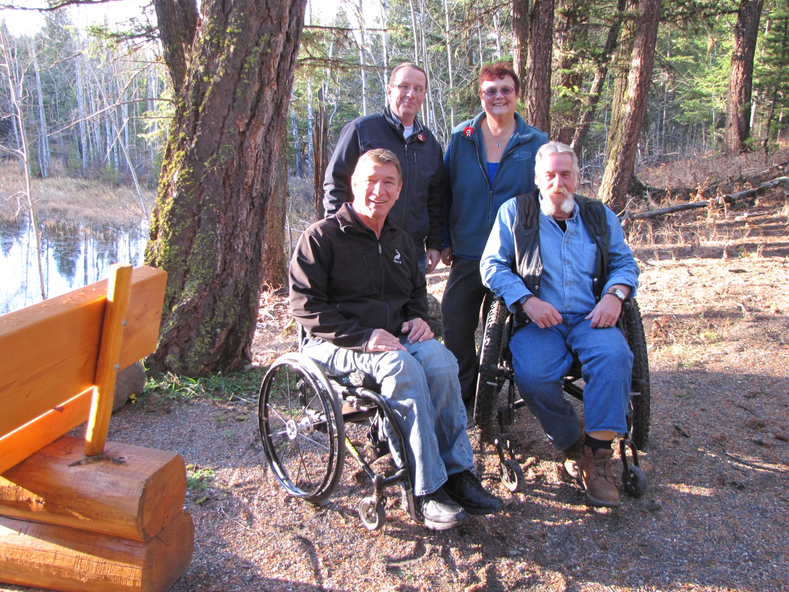 There are accessible picnic tables and benches along the trail, which ends at the Nordic Beanstalk cabin site where users will find a cabin, fire pit, accessible outhouse, and picnic table.