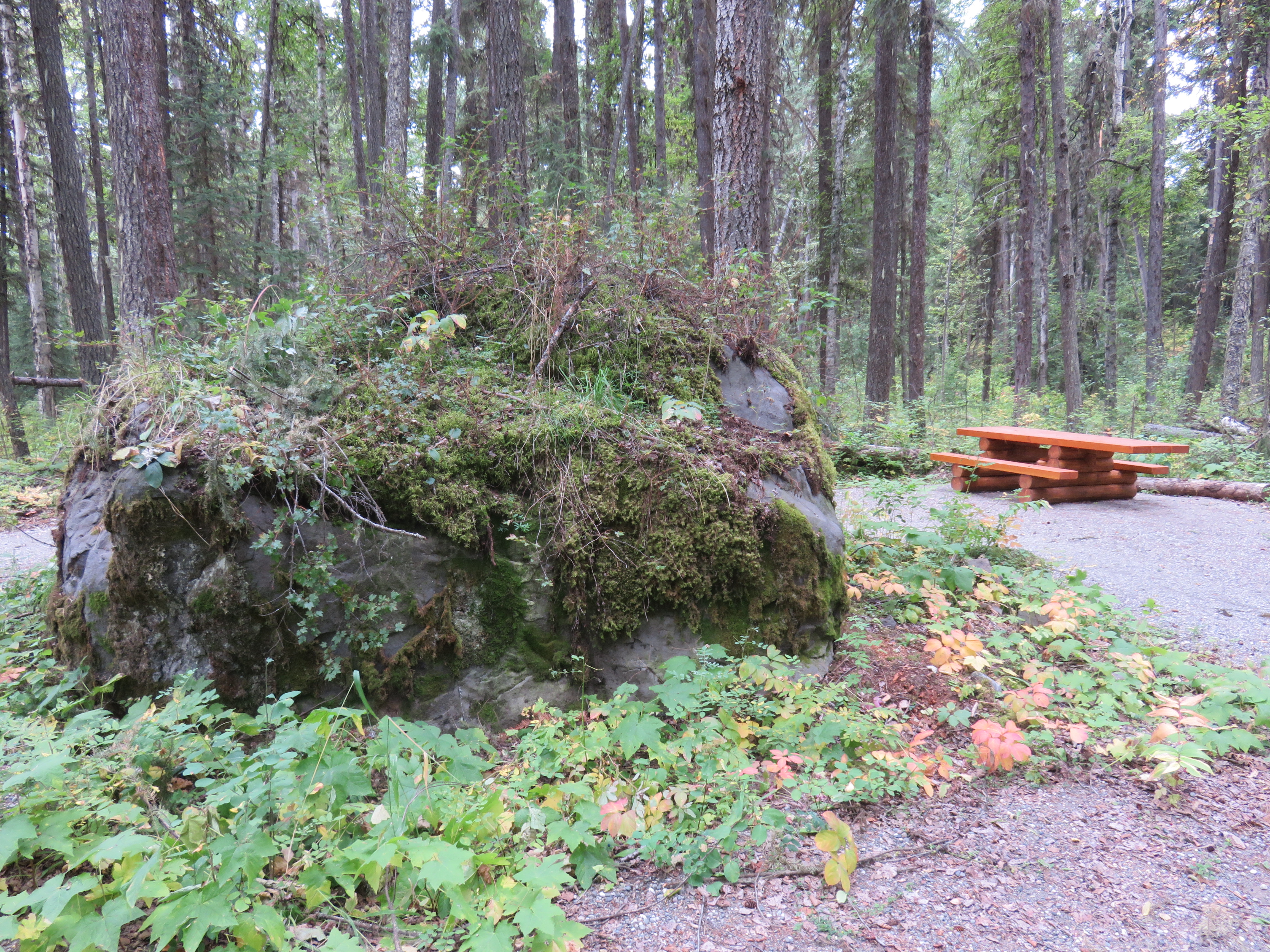 The Claymine Low Mobility trail is approximately 1km long with a gentle grade. It winds through lush forest, looping around a large glacial erratic boulder, before travelling back to the trailhead.