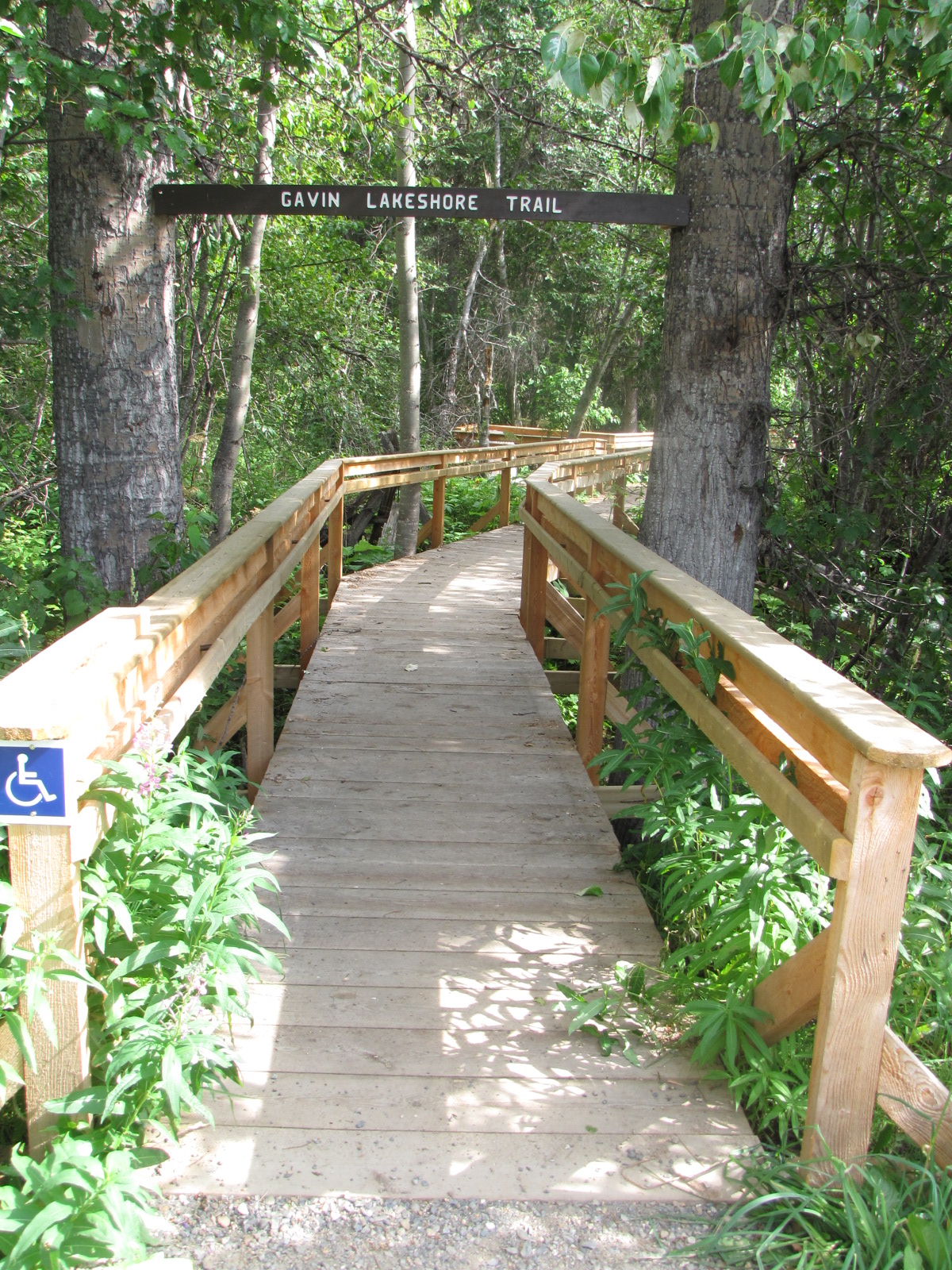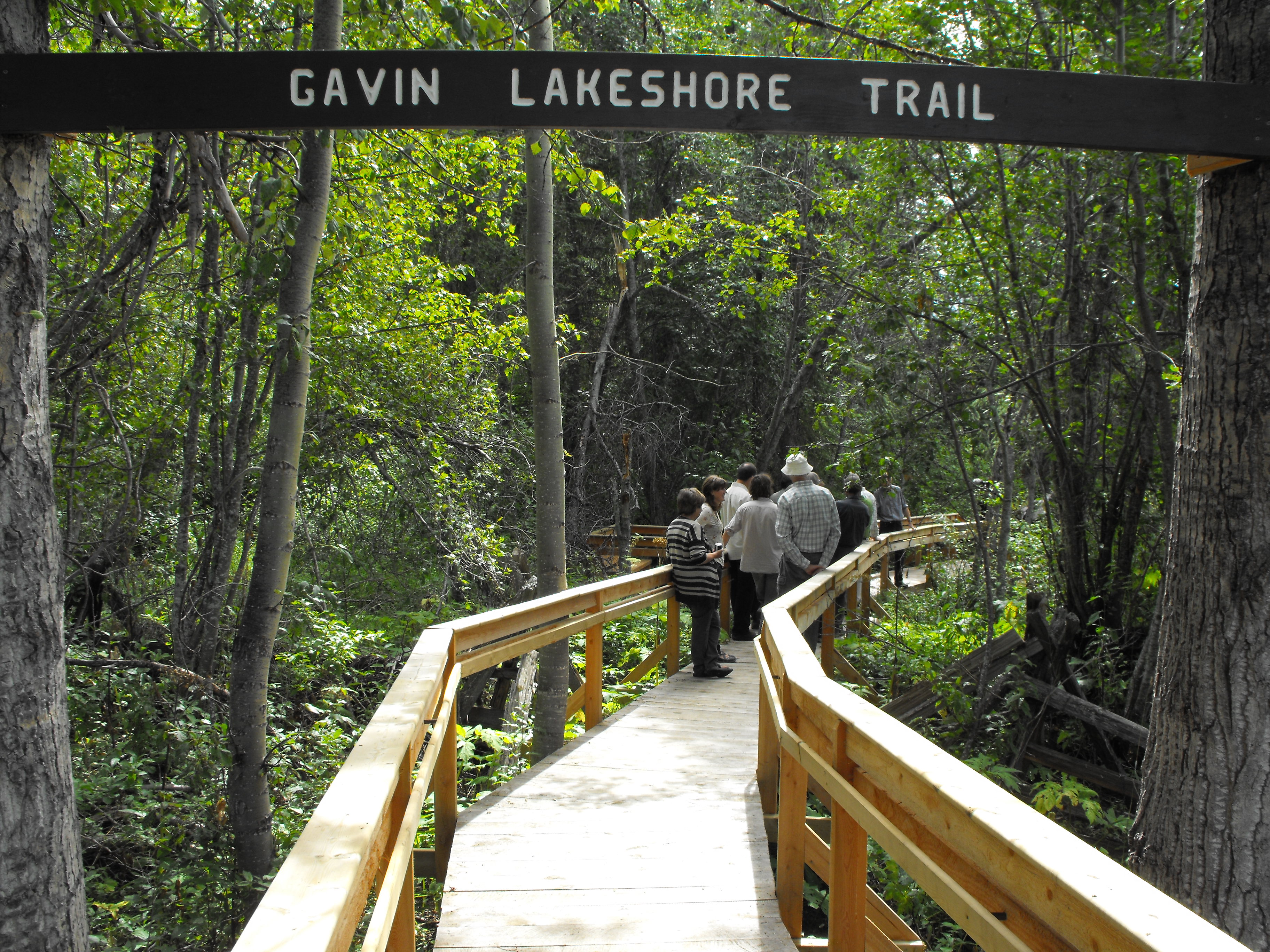 Benches and turnaround/passing points have been placed in convenient locations along the route, and an information kiosk and accessible outhouse are located at the trailhead. The low mobility trail also joins the “Around the Lake” trail which is a 6 kilometre hiking trail following the entire shoreline of Gavin Lake.