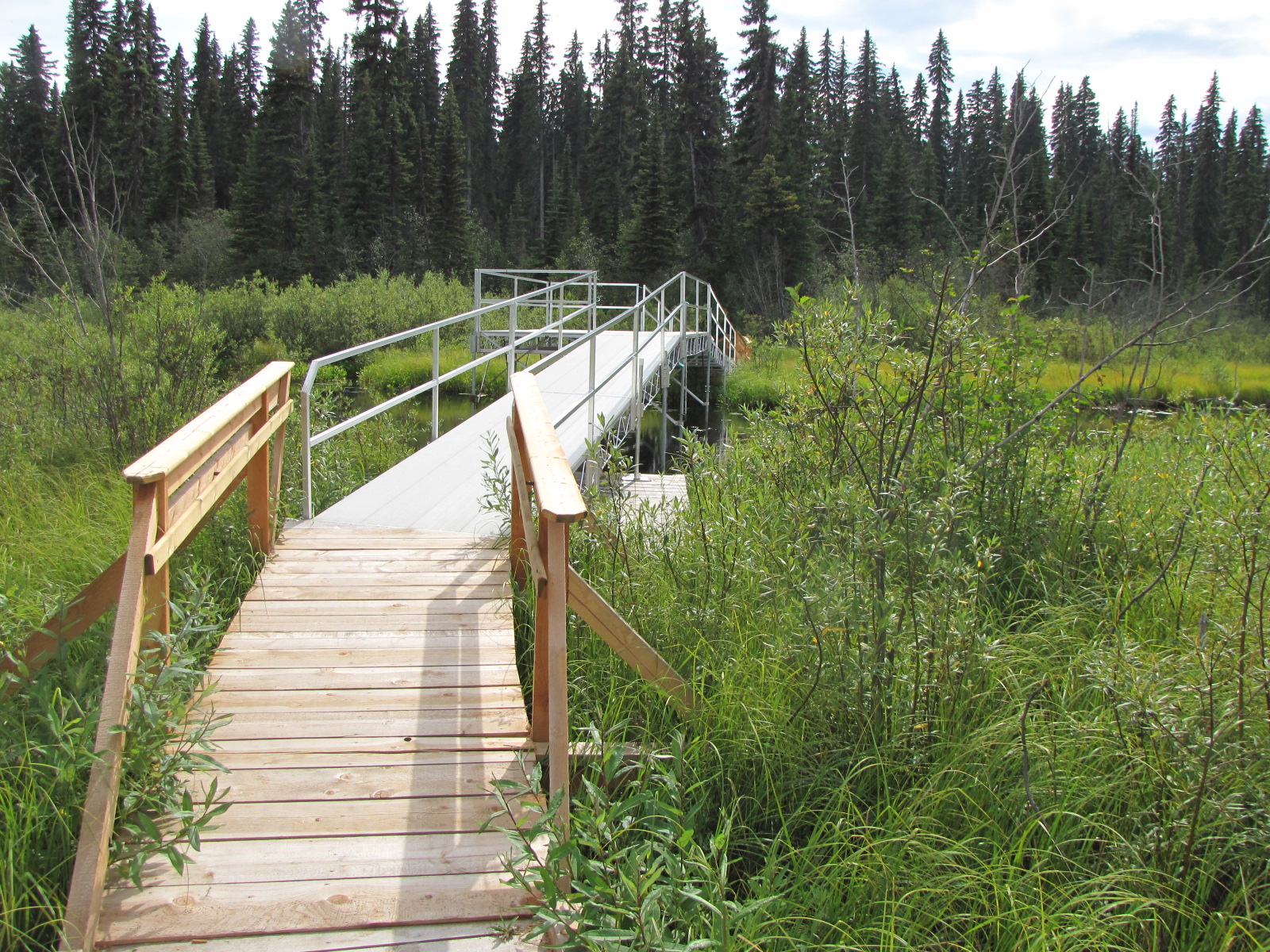 The trail features two accessible bridges - one 24 metre accessible bridge that crosses over Gavin Creek and features a viewing platform and another 5 metre accessible bridge that traverses a sensitive trout spawning creek – as well as an accessible dock/viewing platform at the trail's terminus.