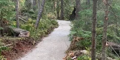 An accessible outhouse is available at the trailhead and there is ample parking. The trail system's gentle grade makes it easy to enjoy for people of all mobility levels and ages.