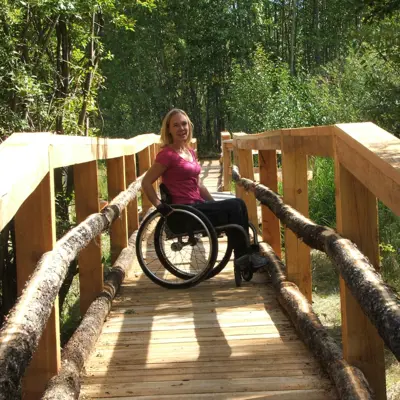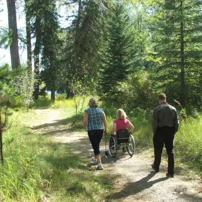 A viewing platform overlooking the convergence of the Horsefly River and the start of the spawning channel is the trail's final destination. The trail has a very gentle grade with one optional section that has a steeper slope offering a more challenging experience.