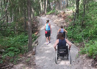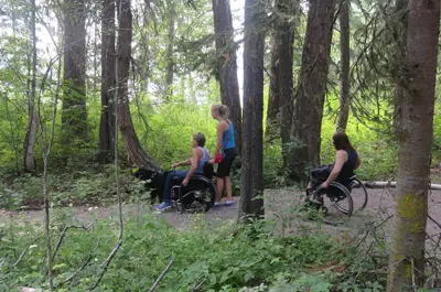 The Kosta's Cove Accessible Trail is located about 12 kilometres north of Quesnel on Bjornson Road, at the north end of 10 Mile Lake.