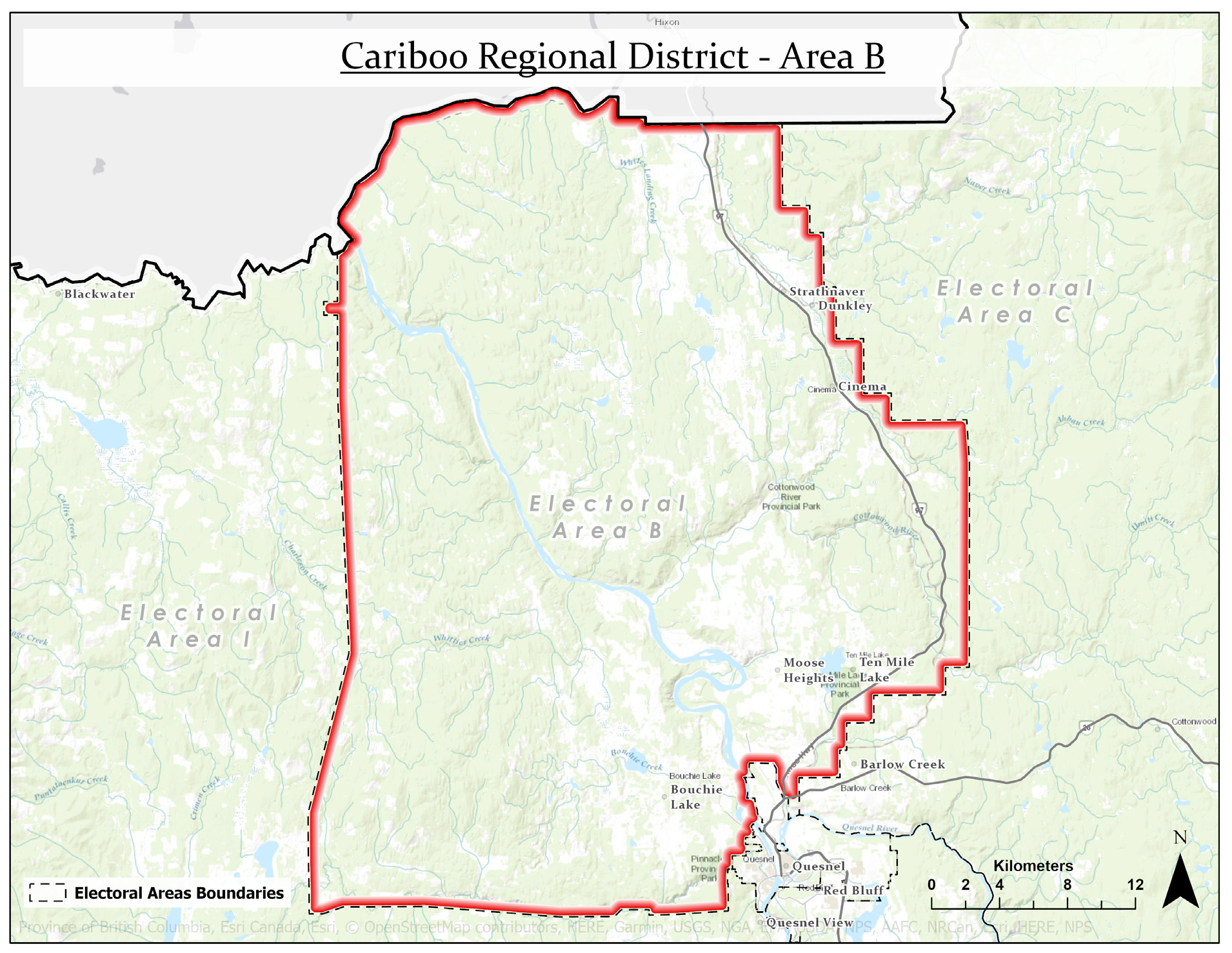 Located north and west of the City of Quesnel, Area B is one of the smaller geographical electoral areas in the CRD. The largest community in Area B is Bouchie Lake. Other rural communities include Ten Mile Lake, Cinema, and Strathnaver. Land Area: 1,415 sq. km