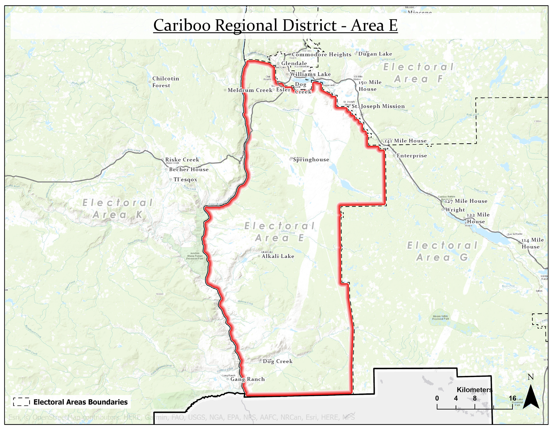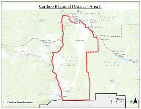 Directly south of Area D and Williams Lake is Area E. Most of its residents live in the fringe area around Williams Lake. Other small communities are Springhouse and Chimney Lake. Land Area: 1,749 sq. km