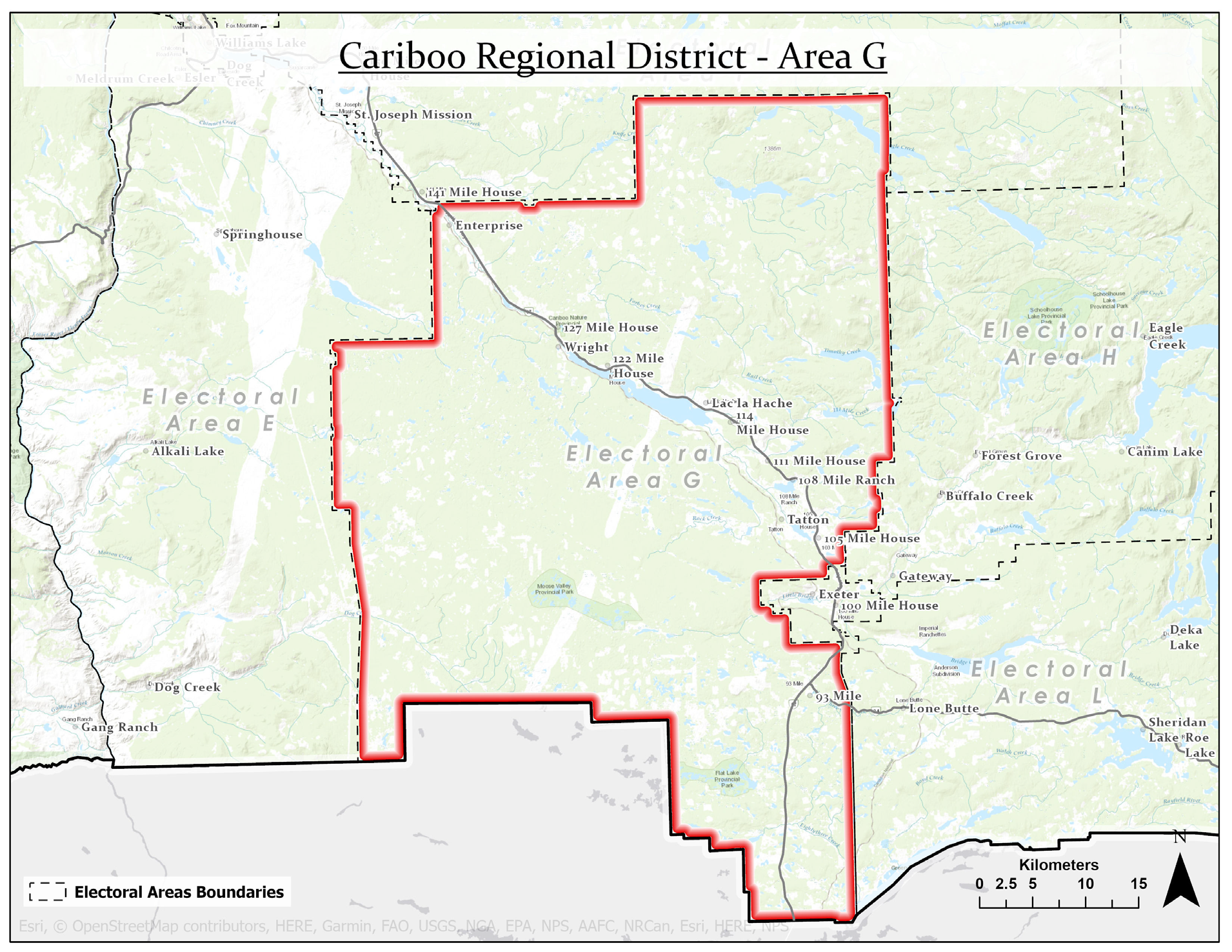The population of Area G lives primarily in Lac La Hache and 108 Mile Ranch, with smaller communities located in 93, 103 and 105 Mile House. Land Area: 2,683 sq. km